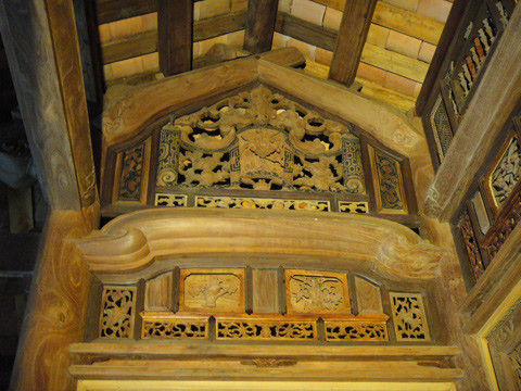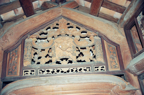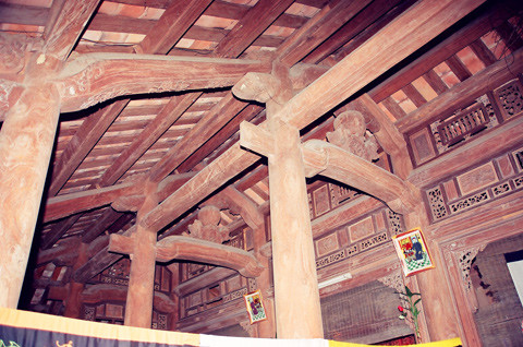 Đặc biệt, ngôi nhà ấn tượng ở không gian kiến trúc, với những nét chạm khắc tinh vi trên từng vì kèo. Các đầu kèo, đuôi kèo được trang trí hình con Giao và lá Cúc cách điệu. Phần bụng kèo là chim trĩ, tùng lộc, nho - sóc, cổ đồ, hoa lan, mai, quả điệp... bụng kèo chạm lộng dây hoa cúc cách điệu, tỉ mỉ đến từng chi tiết.