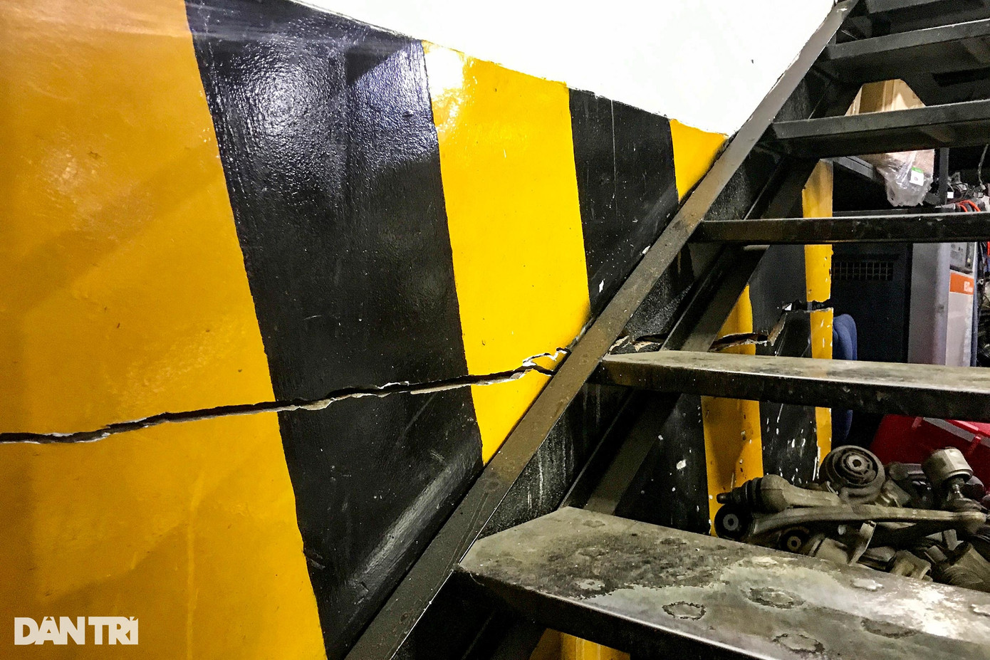 Vết nứt tường ngay trong đêm 23/9 ở xưởng ô tô trên đường 18, phường An Khánh, TP Thủ Đức - bên trên là nơi nhân viên sinh hoạt (Ảnh: Tâm Linh).