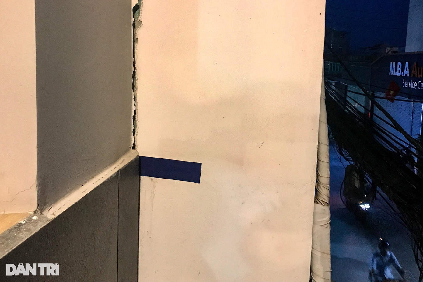 Với kinh nghiệm nghề nghiệp, ngay khi nhìn thấy vết tách rời giữa hai căn nhà, ông Liêm đã đánh dấu lên tường để theo dõi mức độ xô xệch.