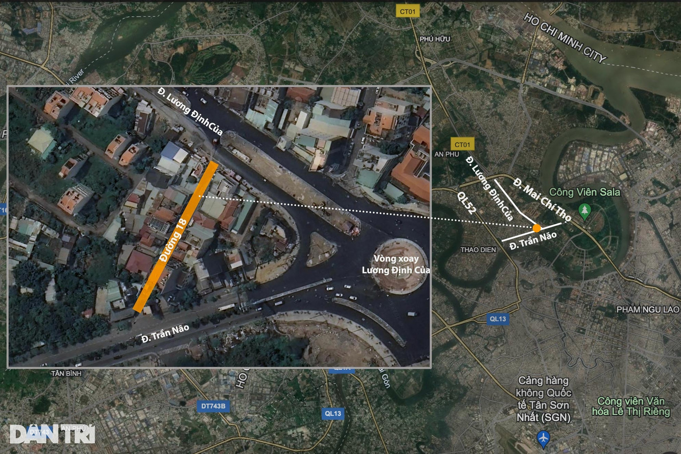 Sự việc xảy ra trên con đường lộ giới 7m nối giữa hai tuyến đường lớn huyết mạch của TP Thủ Đức là Lương Định Của và Trần Não (Đồ họa: Tâm Linh).