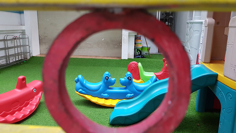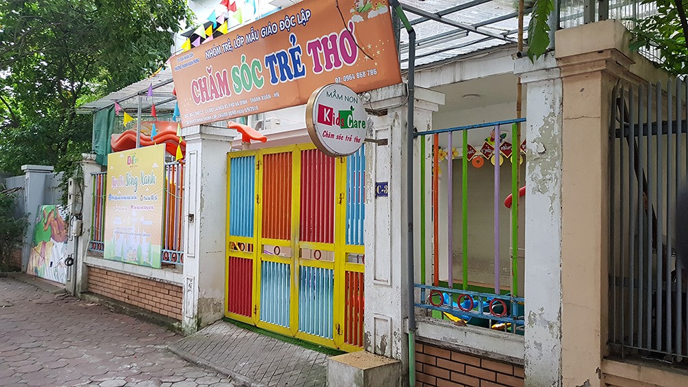 Gần đó, nhiều cư dân chung cư 54 Hạ Đình cũng di tản. Trường mầm non khóa cửa không hoạt động. Ảnh: Hoàng Mạnh Thắng