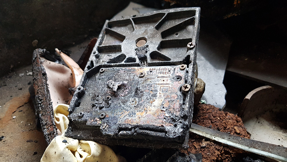 Thứ còn sót lại của một thiết bị điện tử sau vụ cháy. Ảnh: Hoàng Mạnh Thắng