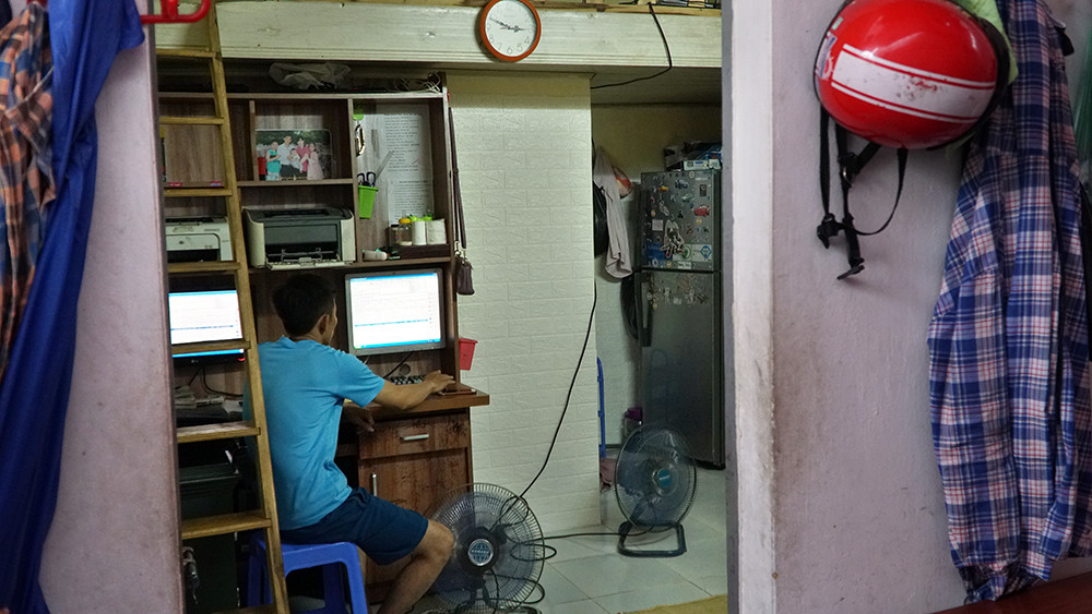 Sau vụ cháy, anh Đỗ Đình Hiệp, chủ cửa hàng gas sát nhà xưởng bị cháy của Cty Rạng Đông bị thiệt hại khoảng hơn 200 triệu đồng. Hiện anh phải thuê phòng trọ ở đường Nguyễn Xiển với giá 2 triệu đồng/tháng để lo cho con cái đi học ổn định. Ảnh: Hoàng Mạnh Thắng
