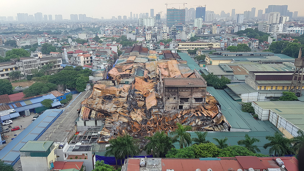 Cty Rạng Đông nhìn từ trên cao ngày 13/9, hơn nửa tháng sau vụ cháy. Ảnh: Hoàng Mạnh Thắng
