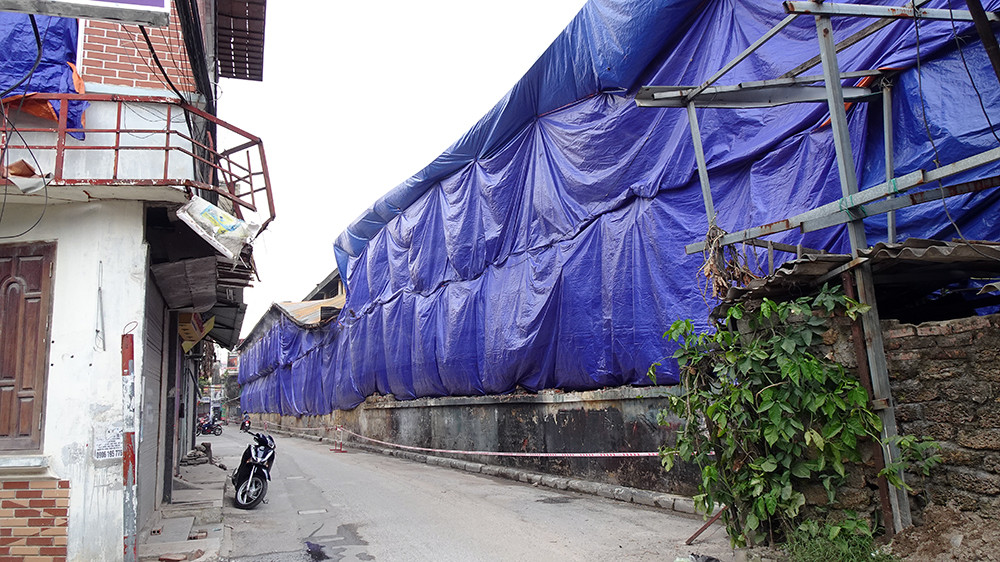 Khu vực ngõ 342 Khương Đình, tiếp giáp với nhà xưởng bị cháy, vắng bóng người. Ảnh: Hoàng Mạnh Thắng