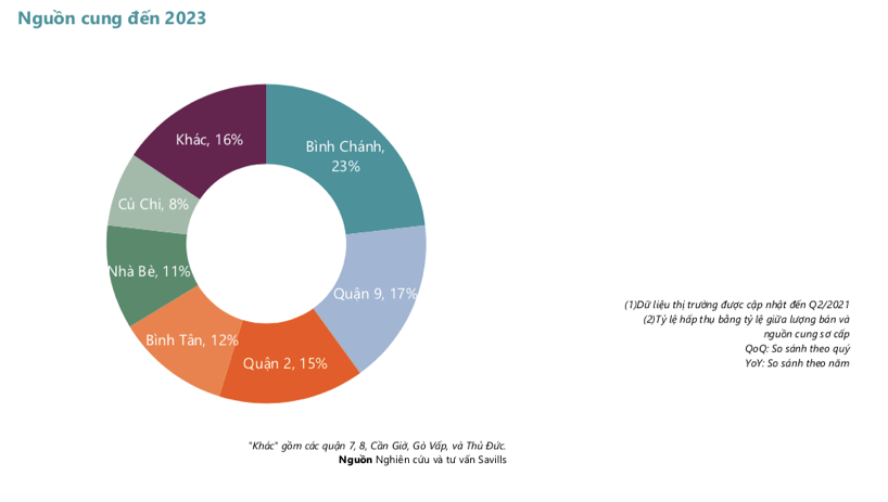 Bà Võ Thị Khánh Trang dự báo, nguồn cung trong quý 3/2021 có thể vẫn khá hạn chế, nhưng các kỳ vọng rằng trong quý 4 thì các dự án sẽ bắt đầu mở bán với các chiến lược về marketing cũng như quảng bá sản phẩm theo xu hướng chuyển đổi số nhiều hơn để tiếp cận khách hàng tốt hơn. Từ nửa cuối năm 2021 đến 2023, nguồn cung nhà ở liền thổ vẫn tập trung chủ yếu tại khu Đông của TPHCM. Cụ thể, nguồn cung mới đối với phân khúc nhà liền thổ tại khu Đông chiếm 32% trên tổng nguồn cung mới.
