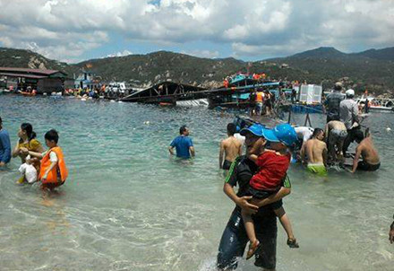 "Tôi đứng trên bờ nhìn thấy hàng trăm người la hét hoảng loạn. Nhiều tàu gần đó chạy đến cứu nhưng các nạn nhân giành nhau lên tàu", anh Linh, du khách ở TP HCM nói. "Ban đầu mọi người tập trung cứu trẻ em và phụ nữ", anh Nguyễn Phước Thiện, một du khách đến từ Đăk Lăk cho biết thêm.