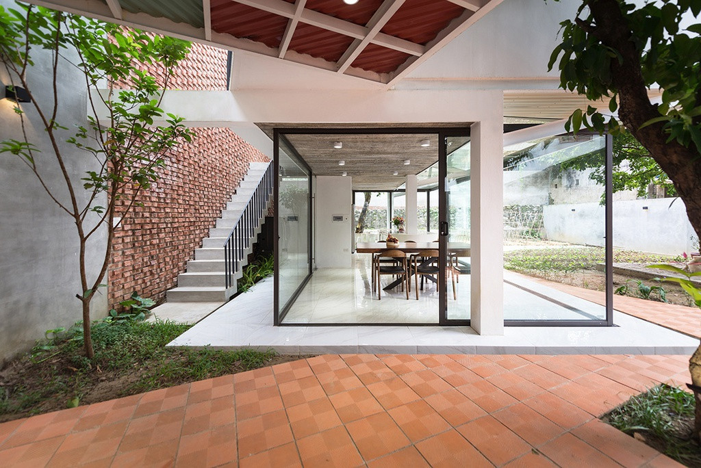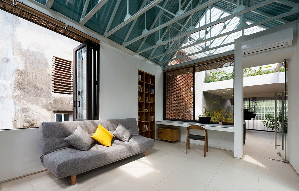 Khoảng đệm của ngôi nhà rất sáng sủa do hiệu ứng từ lớp gạch kính.