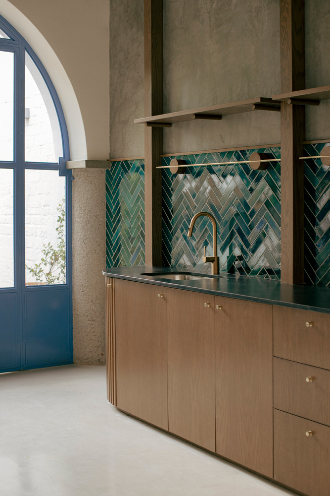 Bố cục căn nhà được chia làm hai phần với không gian sinh hoạt riêng tư chính ở phía trước và sân vườn, phòng khách lớn có lò sưởi ở phía sau phục vụ cho nhu cầu giải trí của gia chủ. Các vật liệu được sử dụng như gạch, ngói và sàn đất sét đều được sản xuất tại địa phương, tạo nên sự hài hòa, gần gũi cho tổng thể căn nhà.