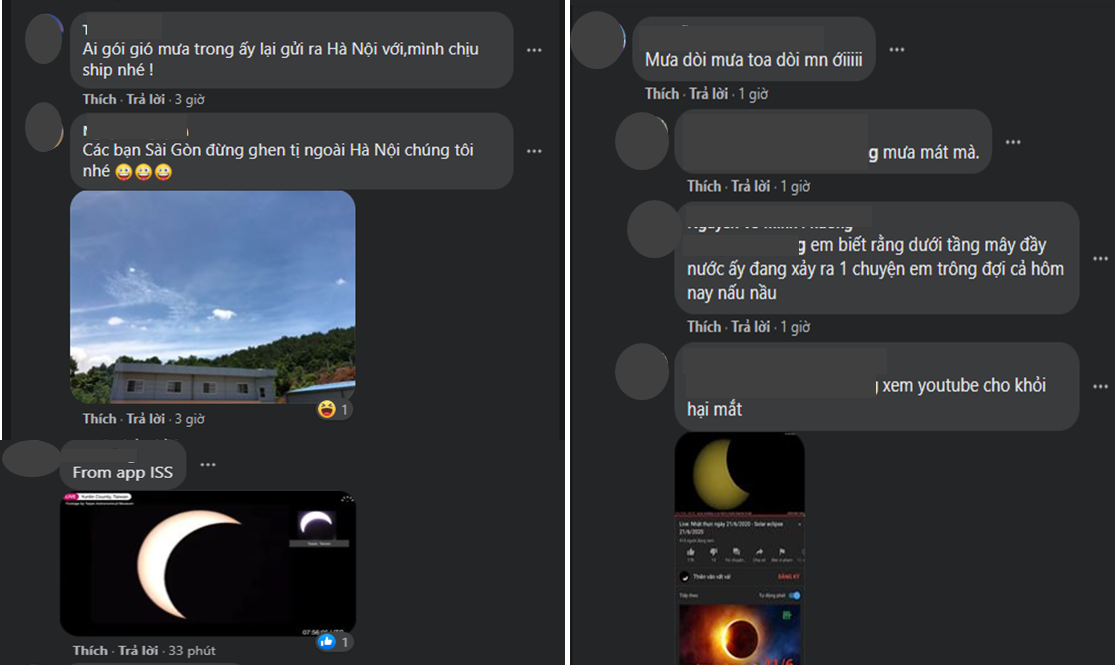 Trong lúc các bạn trẻ nơi nơi đang quan sát hiện tượng kì thú này, thì team TP.HCM ngậm ngùi đón cơn mưa tầm tã. Nhưng dù mưa to ra sao cũng không ngăn cản được niềm thích thú muốn coi Nhật thực. Các bạn chọn quan sát qua app và ngồi “ngóng” tin từ phương xa.