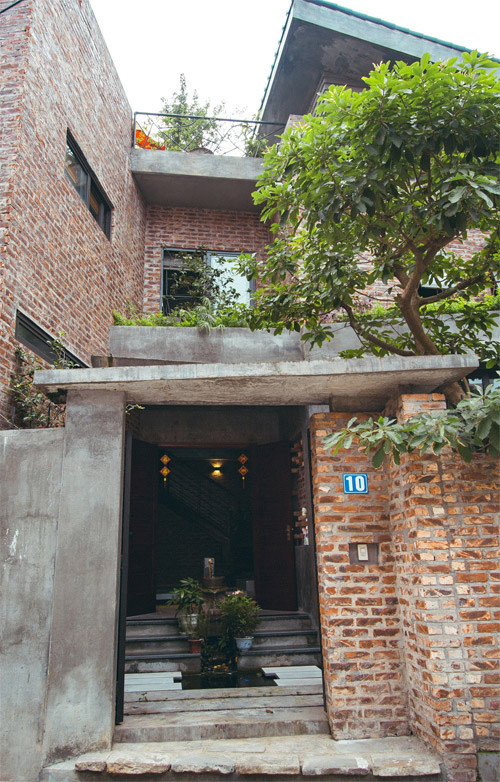 Là kiến trúc sư, gia chủ muốn thiết kế một không gian sống cá tính, độc đáo. Yêu thích chất liệu tự nhiên, anh Thưởng quyết định, phần lớn các mảng tường trong nhà để nguyên gạch mộc, không sơn trát.