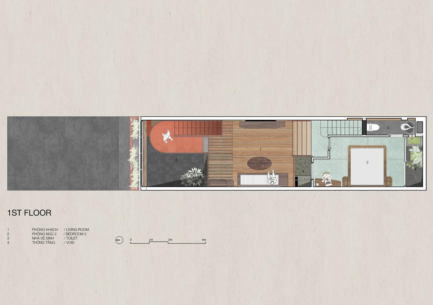 | Căn nhà này tọa lạc tại khu vực đang phát triển ở phía Tây trung tâm TP HCM, nơi đang diễn ra quá trình đô thị hóa ồ ạt. Đây là một phần nguyên nhân chính dẫn đến các vấn đề tiêu cực về môi trường tại khu vực sinh sống (ô nhiễm bụi, ô nhiễm tiếng ồn, tắc đường...). Hơn nữa, các yếu tố nói trên cũng cô lập những ngôi nhà ở ngoại ô và tạo ra sự mất kết nối với môi trường tự nhiên. |