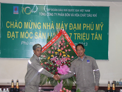 Buổi chiều cùng ngày, tại Nhà máy Đạm Phú Mỹ, PVFCCo đã tổ chức buổi lễ đón mừng và công bố tấn sản phẩm Đạm Phú Mỹ thứ 7 triệu. Phát biểu tại buổi lễ, thay mặt Ban lãnh đạo TCT, ông Cao Hoài Dương – Tổng Giám đốc PVFCCo khẳng định đây là sự kiện rất có ý nghĩa và là một dấu mốc của chặng đường phát triển vững mạnh của Tổng công ty cũng như ngành nông nghiệp nước nhà. Trước đó, vào tháng 9/2013, PVFCCo đã hoàn thành xuất sắc đợt bảo dưỡng tổng thể năm 2013 trước kế hoạch 38h, đạt 4 chỉ tiêu an toàn, chất lượng, tiến độ và tiết kiệm chi phí. Nhà máy Đạm Phú Mỹ cũng đã đạt 100% kế hoạch sản xuất urê năm 2013 trước thời hạn 20 ngày.