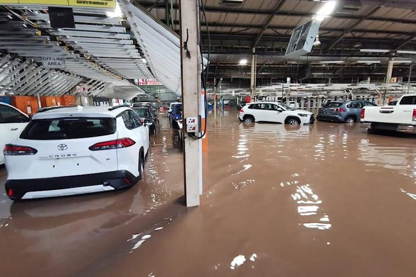 | Mưa lớn khiến nhà máy của Toyota bị ảnh hưởng nghiêm trọng. |