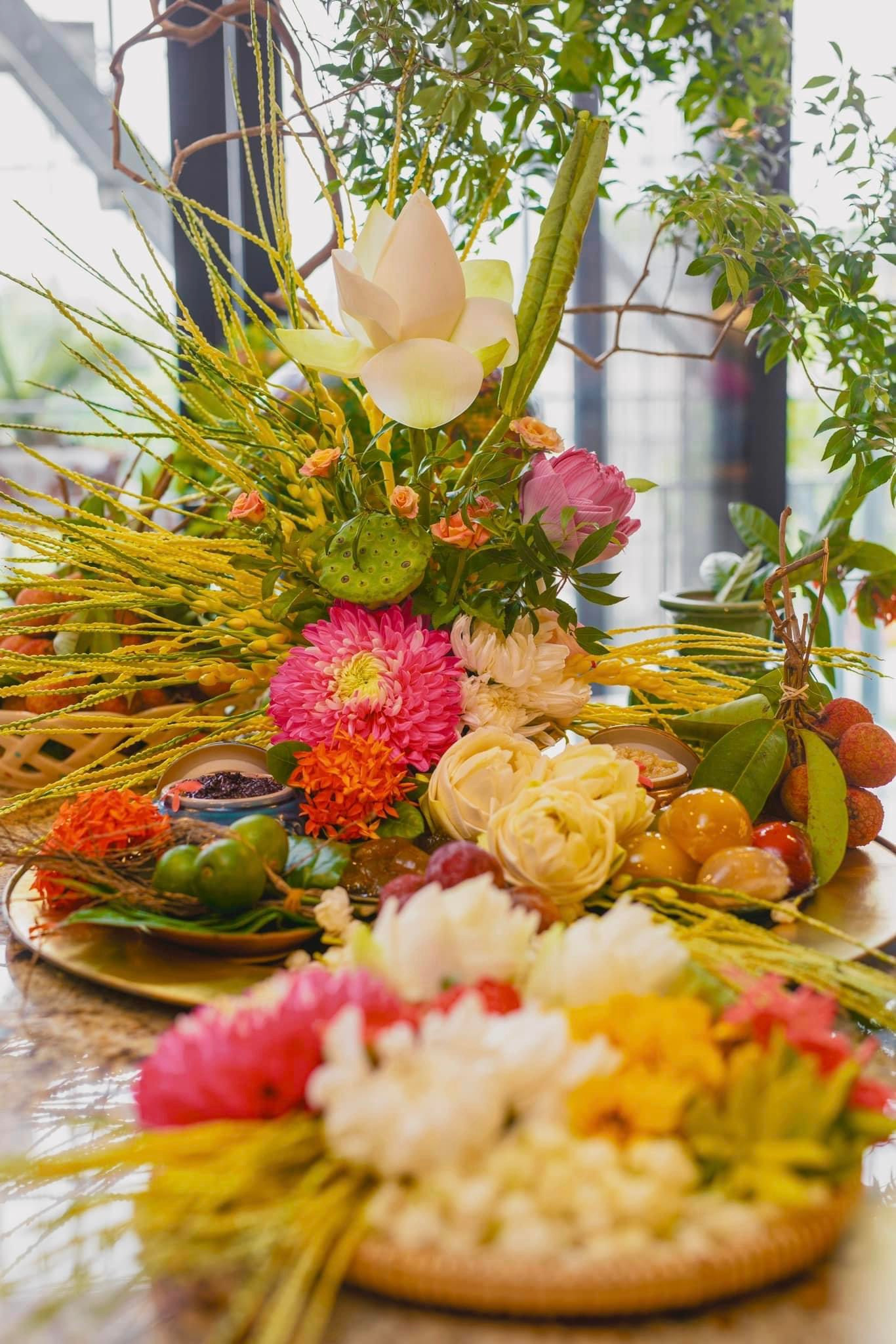 | Những mâm cỗ cúng Tết Đoan ngọ được trang trí bắt mắt. |