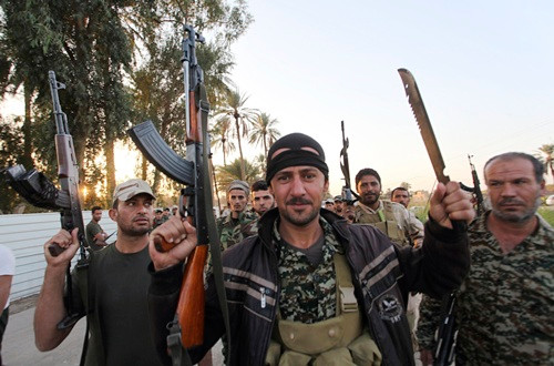 Tại thị trấn Jurf al-Sakhar gần Baghdad, một nhân chứng của Reuters nhìn thấy những chiến binh trong đồng phục ngụy trang xanh hét lên và chửi thề trước mặt những thành viên của nhóm Hồi giáo IS, vừa đá, đánh những người này bằng báng súng trường.