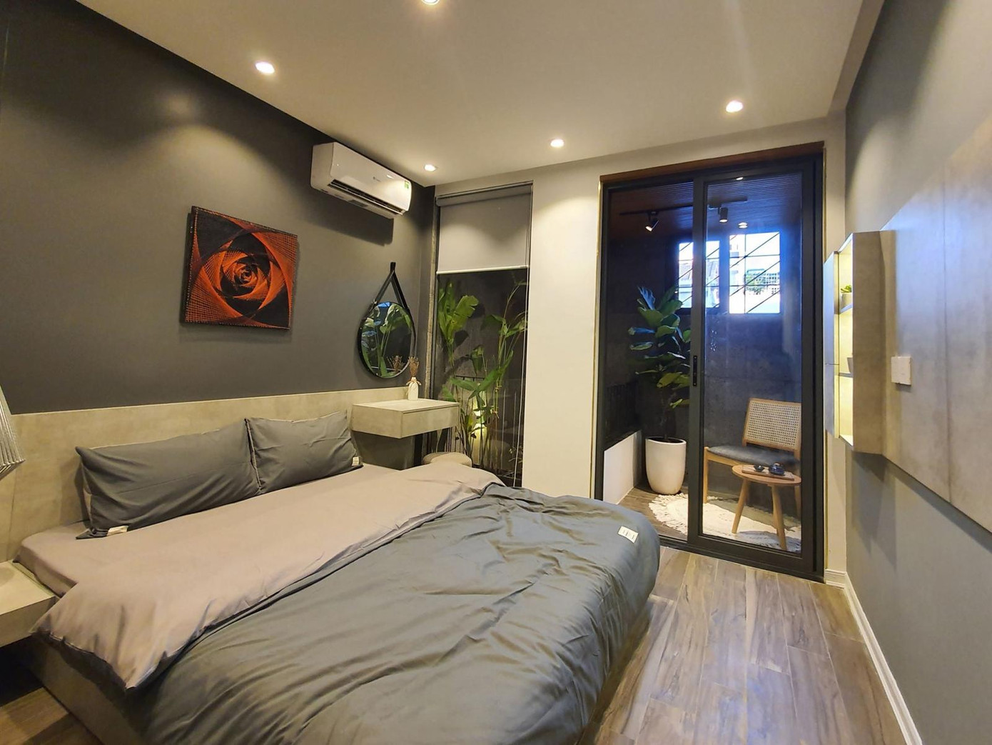 Một phòng ngủ khác sử dụng tông xám chủ đạo, mang lại cảm giác yên bình, thanh tịnh.
