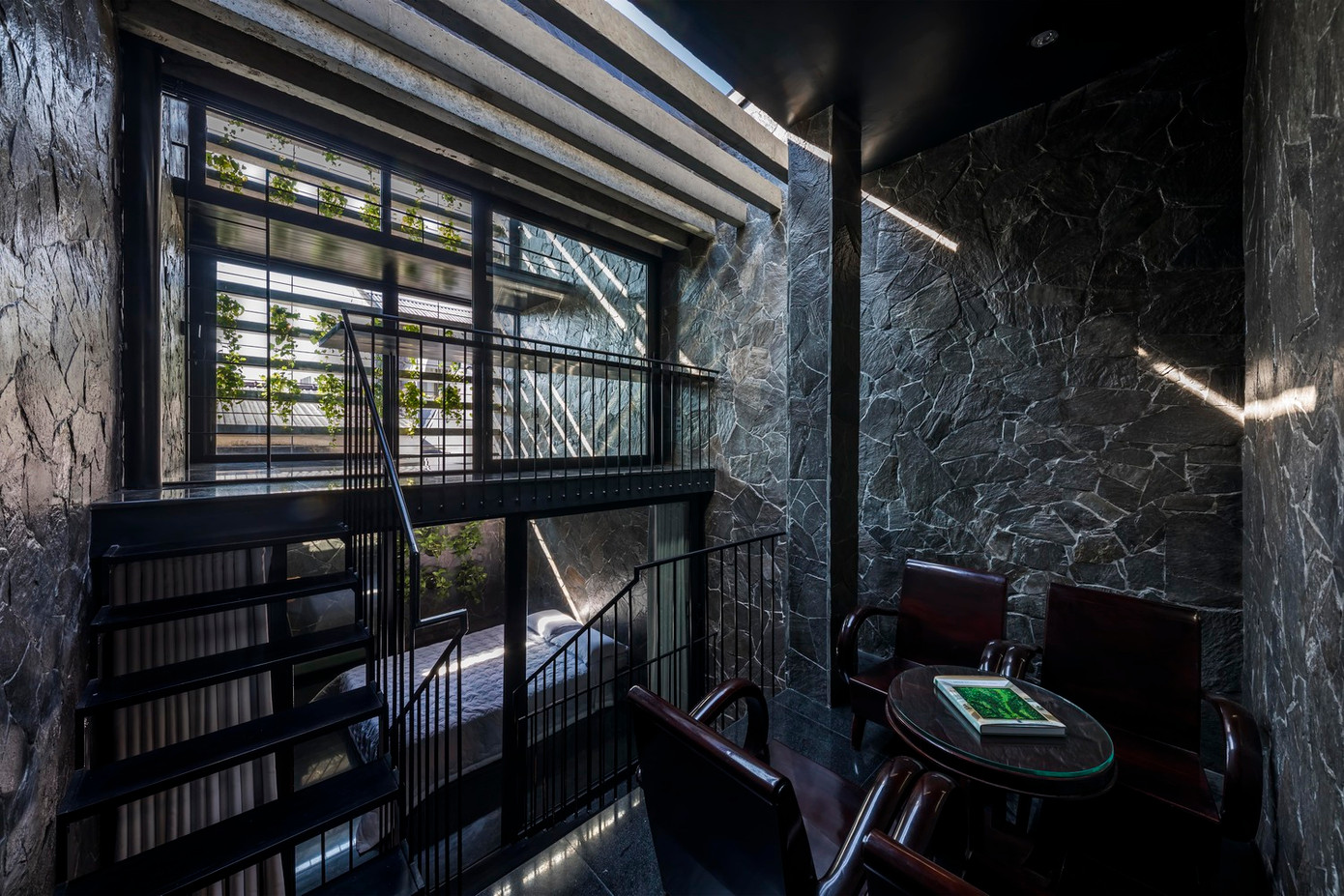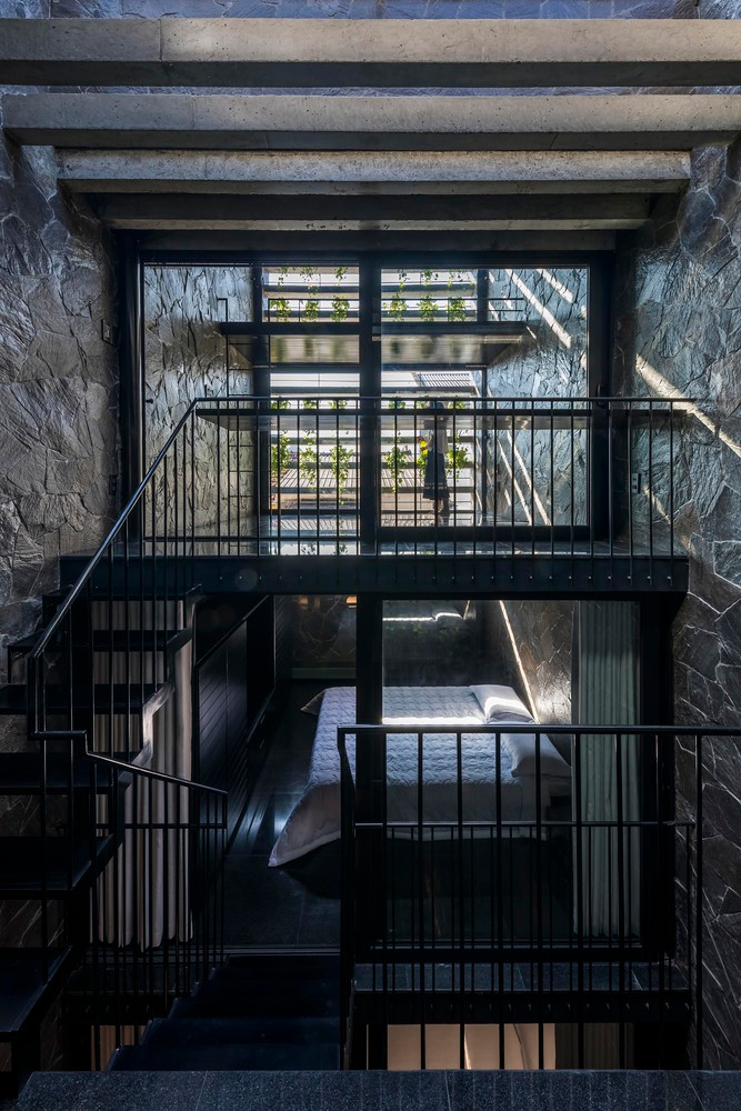 Nhưng điểm khác biệt chính là các giải pháp của nhà thiết kế để khai thác tối đa các mặt thoáng còn lại đồng thời điều chỉnh vi khí hậu cho nhà phố nhiệt đới.