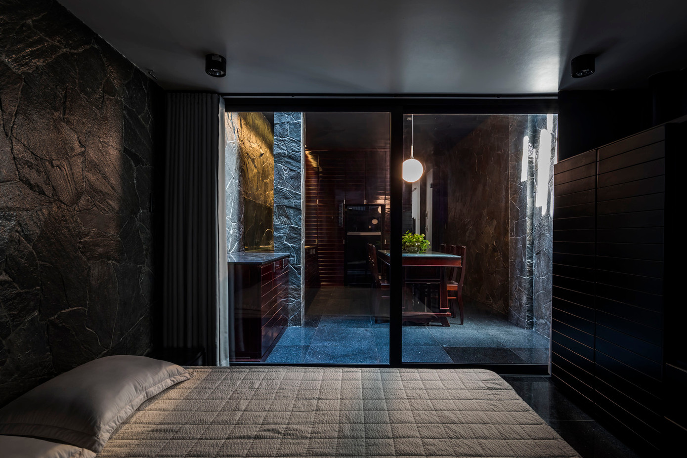 Nhờ có các bức tường đá mà không gian trong nhà luôn mát mẻ bởi nó có khả năng cách nhiệt tốt, đồng thời chất liệu này cũng tạo nên màu sắc và cảm giác sang trọng cho ngôi nhà.