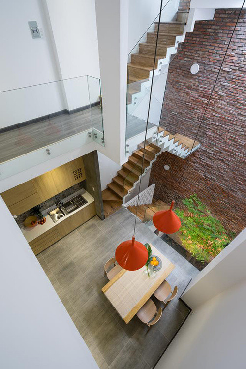 Khu thông tầng cuối nhà chính là góc ưng ý nhất của kiến trúc sư khi đem lại cảm giác bình yên và ánh sáng, sự kết nối cho cả ngôi nhà.
