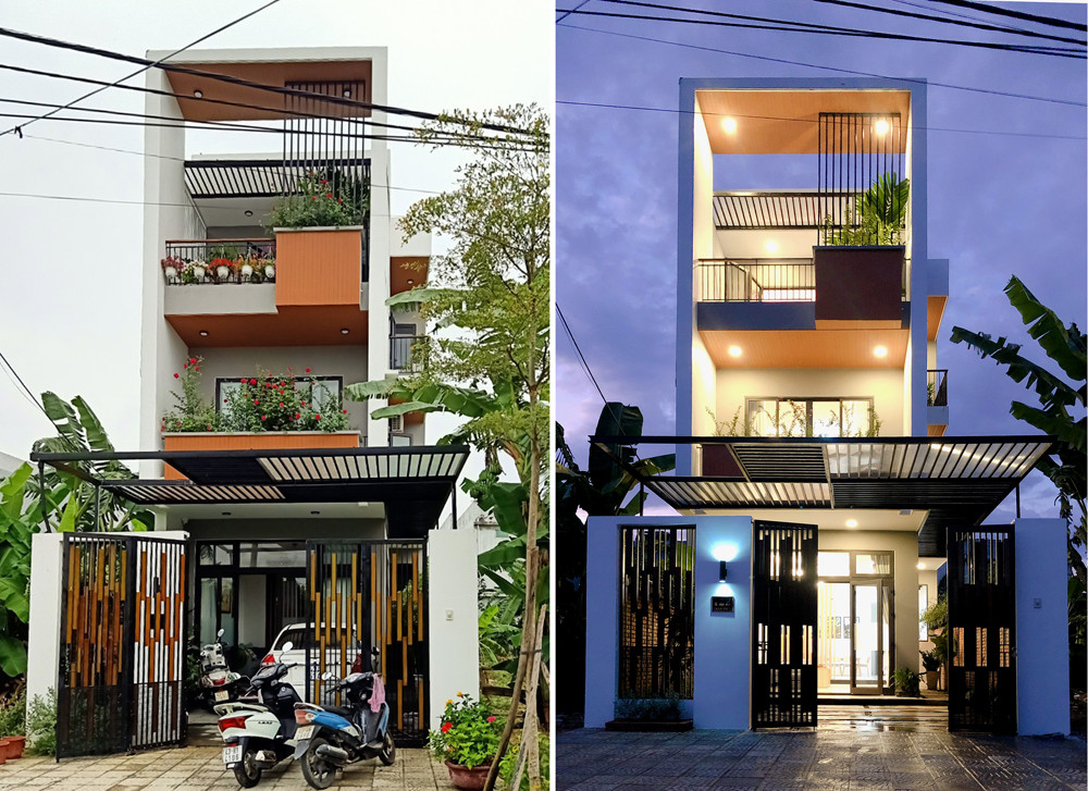 Ngôi nhà được KTS Phạm Ngọc Hiếu thiết kế tỷ mỷ mát mắt, chỉ có mặt tiền 5m nhưng khi nhìn vào có cảm giác rộng như là 7m, ngôi nhà được thiết kế từng chi tiết, nhìn bộ cổng được thiết kế rất lạ mắt và cầu kỳ.