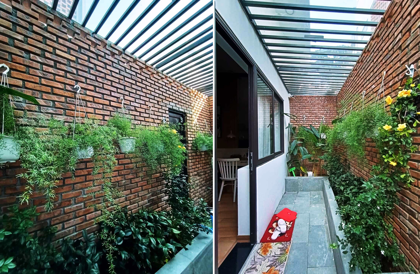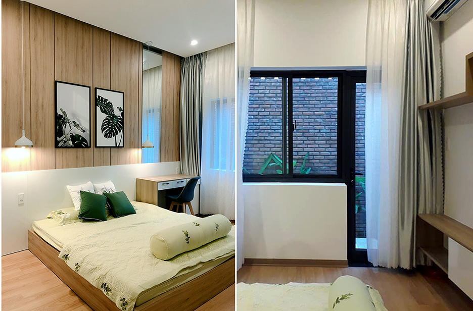Gia chủ chừa 1m làm khoảng sân sau, vừa tạo tiểu cảnh lấy sáng vừa trang trí đẹp mắt cho phòng ngủ phía sau.