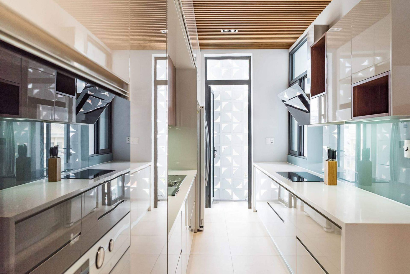 Nhà bếp sang trọng, tinh tế với đủ tiện nghi. Nhà bếp có cửa riêng dẫn ra ban công.
