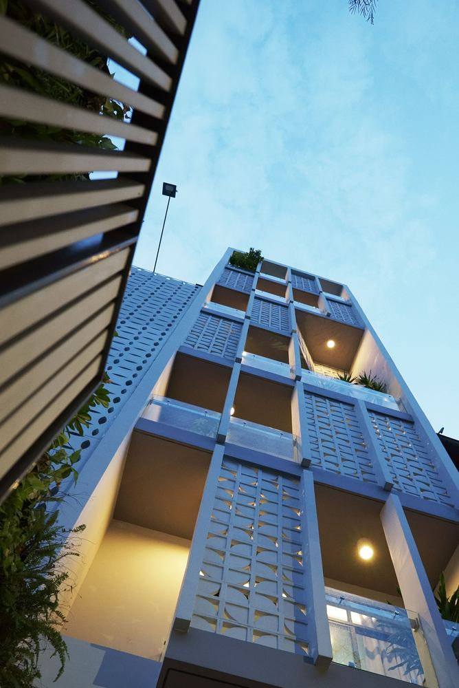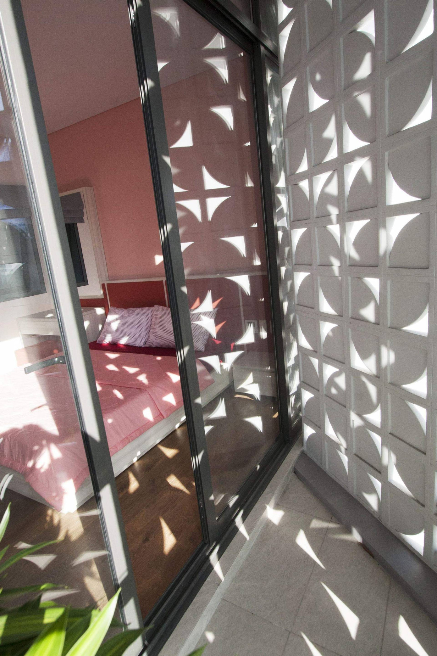 Những bức tường lam gió ở ban công được lấy cảm hứng từ những cánh chong chóng rất đẹp và hấp dẫn.
