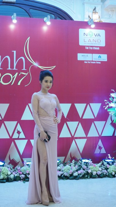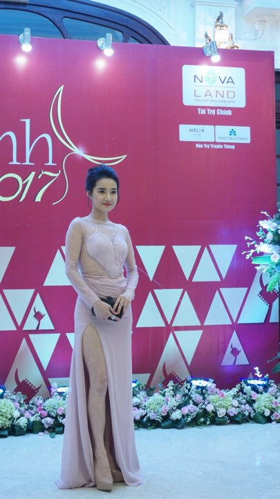 Lễ trao giải chính thức lên sóng lúc 20h. Nhã Phương xuất hiện rạng ngời quyến rũ với chiếc đầm màu nude khoe trọn lưng trần và đôi chân thon dài.