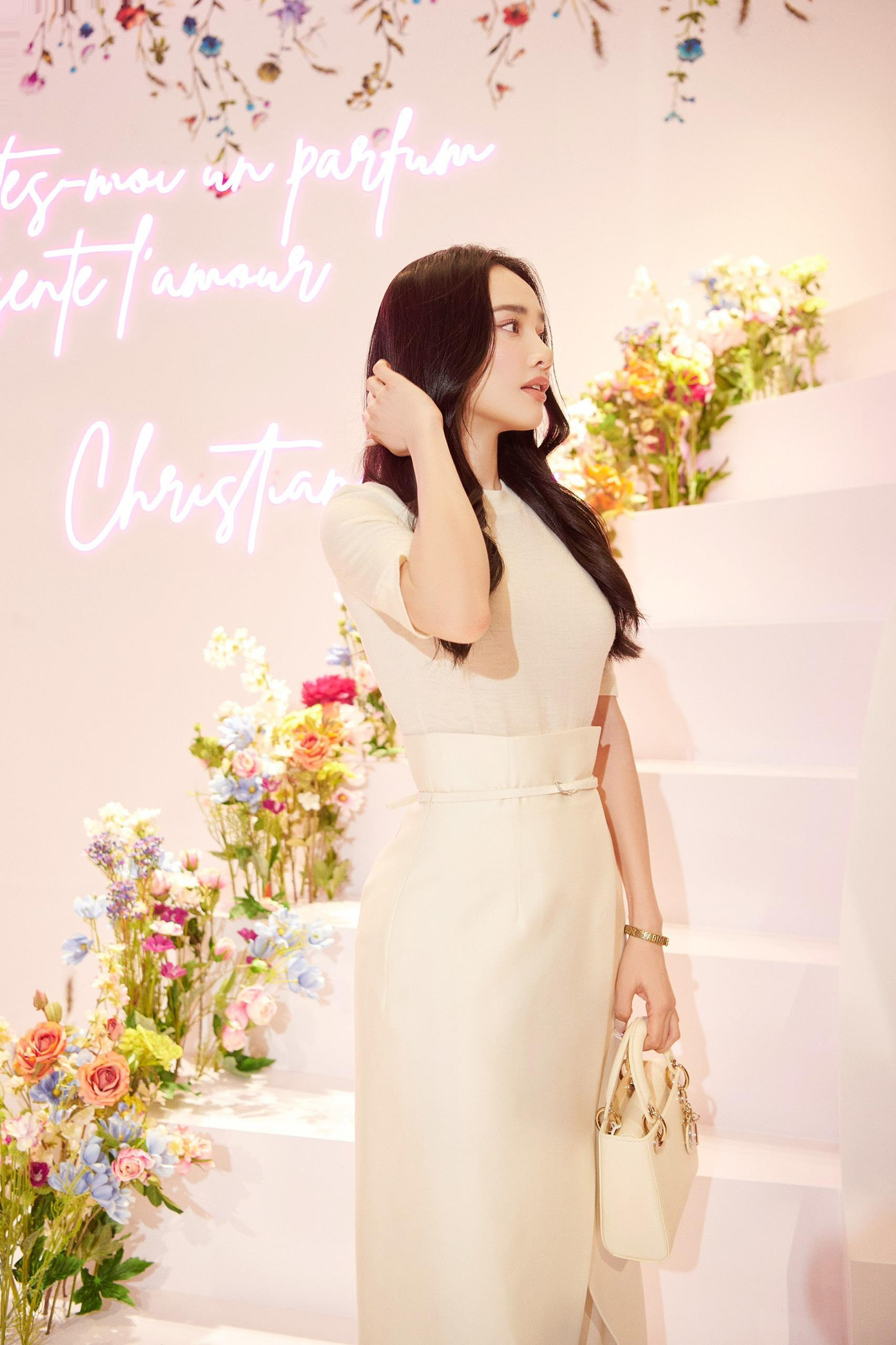 Xuất hiện tại sự kiện, Nhã Phương vẫn trung thành với phong cách thanh lịch, nhẹ nhàng. Nhan sắc của nữ diễn viên ngày càng mặn mà và rạng ngời. Nhã Phương lựa chọn diện chân váy trắng, đồng điệu với màu túi hiệu, hoàn thiện vẻ ngoài đẹp tinh khôi, sang trọng. Làn tóc đen uốn sóng nhẹ giúp nữ diễn viên thêm phần cuốn hút, thu hút ánh nhìn của mọi người.