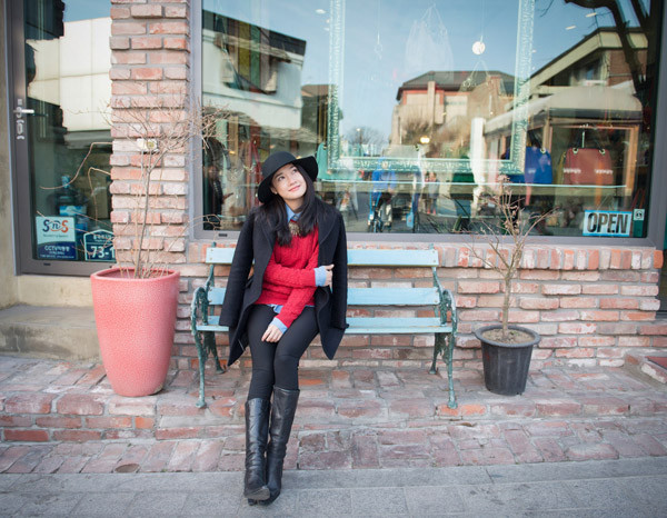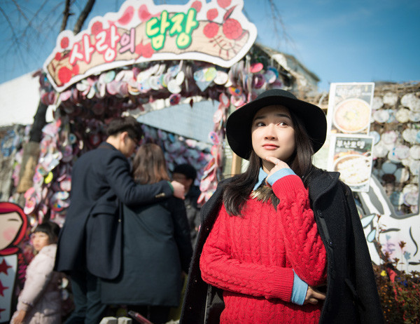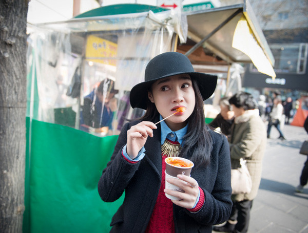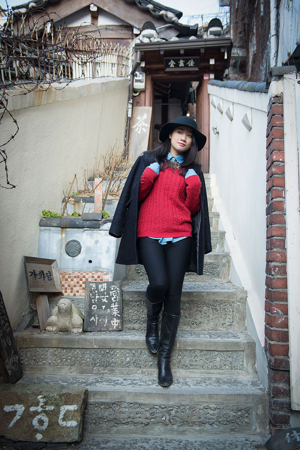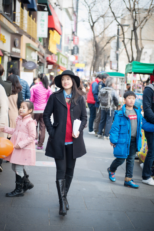 Tranh thủ những ngày rảnh rỗi không phải đóng phim, Nhã Phương xuống phố để thưởng thức khung cảnh đường phố Hàn Quốc tấp nập.