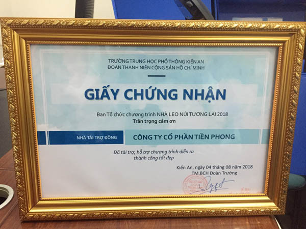 Ngày 05/08/2018, Nhà sách Tiền Phong chi nhánh Hải Phòng đã hỗ trợ tổ chức và trao quà tặng cho chương trình “Nhà leo núi tương lai 2018” tại trường THPT Kiến An- Hải Phòng.