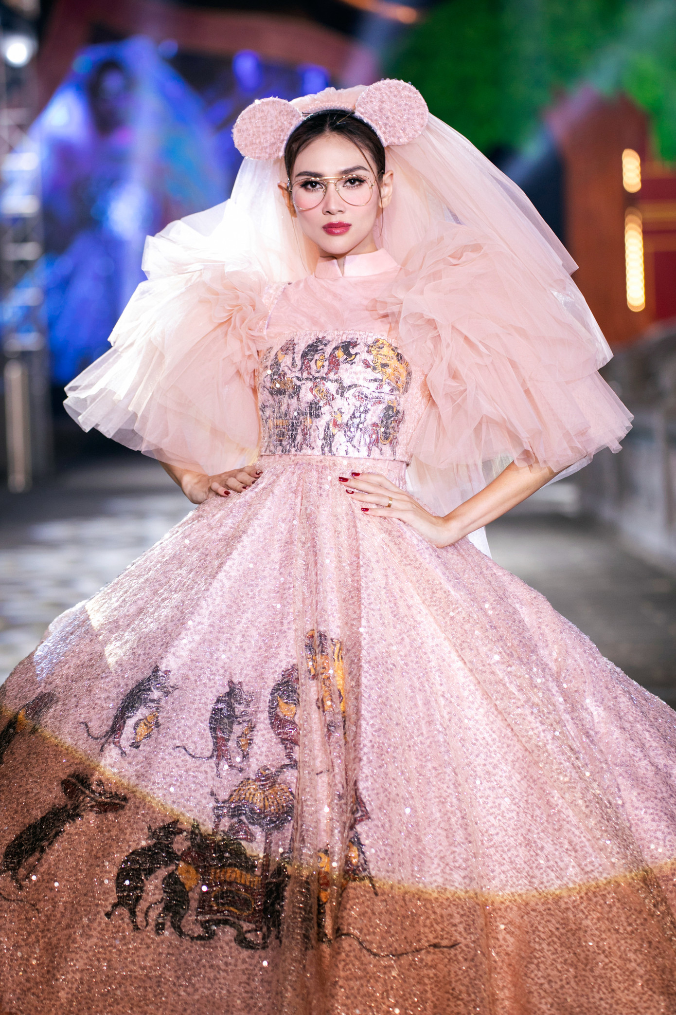 Kết thúc câu chuyện về những bức tranh dân gian Đông Hồ của Nguyễn Minh Công chính là “cô dâu” Võ Hoàng Yến với thiết kế lấy cảm hứng từ bức tranh Đám cưới chuột. Diện thiết kế là sự kết hợp của đầm công chúa Tây phương bồng bềnh cùng áo dài Việt, vedette Võ Hoàng Yến bước ra đầy lộng lẫy khi hóa thân thành cô dâu chuột trên sàn diễn của NTK Nguyễn Minh Công.