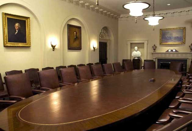 Phòng Nội Các - Cabinet Room là phòng họp của các thư kí và cố vấn. Chiếc bàn bằng gỗ “khổng lồ” đặt giữa căn phòng là món quà của Tổng thống Richara Nixon cho Nhà Trắng vào năm 1970. Ghế ngồi là thiết kế từ cuối thế kỉ 18.