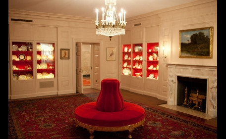 China Room là phòng trưng bày bộ sưu tập đồ gốm sứ của Đệ nhất Phu nhân Caroline Harrison. Màu đỏ của căn phòng được lựa chọn giống với màu áo mà Đệ nhất Phu nhân mặc trong bức chân dung.
