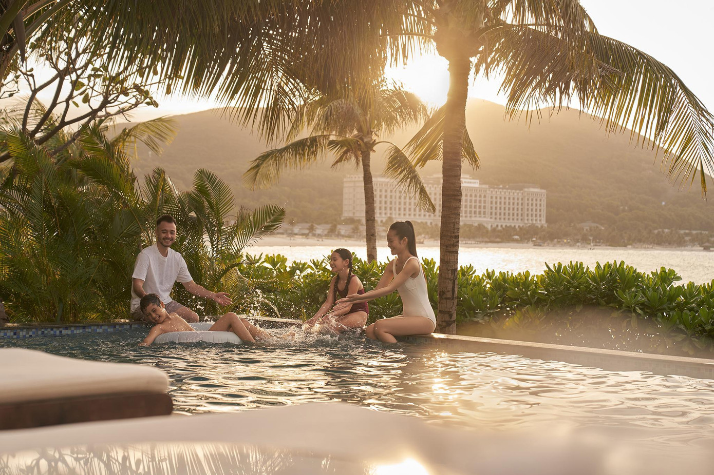Với những gia đình yêu thích sự năng động, không thiếu những cơ hội để du khách được thỏa sức vui chơi cùng nhau. Từ những trận bóng pickleball sôi động, đến vòng xe đạp đôi băng qua những cung đường xanh ngát của khu nghỉ. Đặc biệt, vào mỗi cuối tuần, các bé sẽ được thỏa thích đắm chìm trong buổi tiệc bọt nước tại hồ bơi trẻ em.