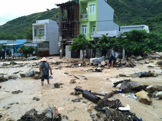 Suốt đêm 12/12 và sáng 13/12, mưa như trút nước xuống TP Nha Trang (Khánh Hòa). Đến rạng sáng 13/12, triền đồi thuộc khuôn viên Đại học Nha Trang bị sạt lở, hàng trăm mét khối đất đá, cây xanh đổ xuống đường Phạm Văn Đồng. Tại thời điểm này, một xe taxi biển số 79A 06540 và ô tô biển số 79A 04862 đang di chuyển thì bị đất đá vùi lấp. Rất may không gây thiệt hại về người.