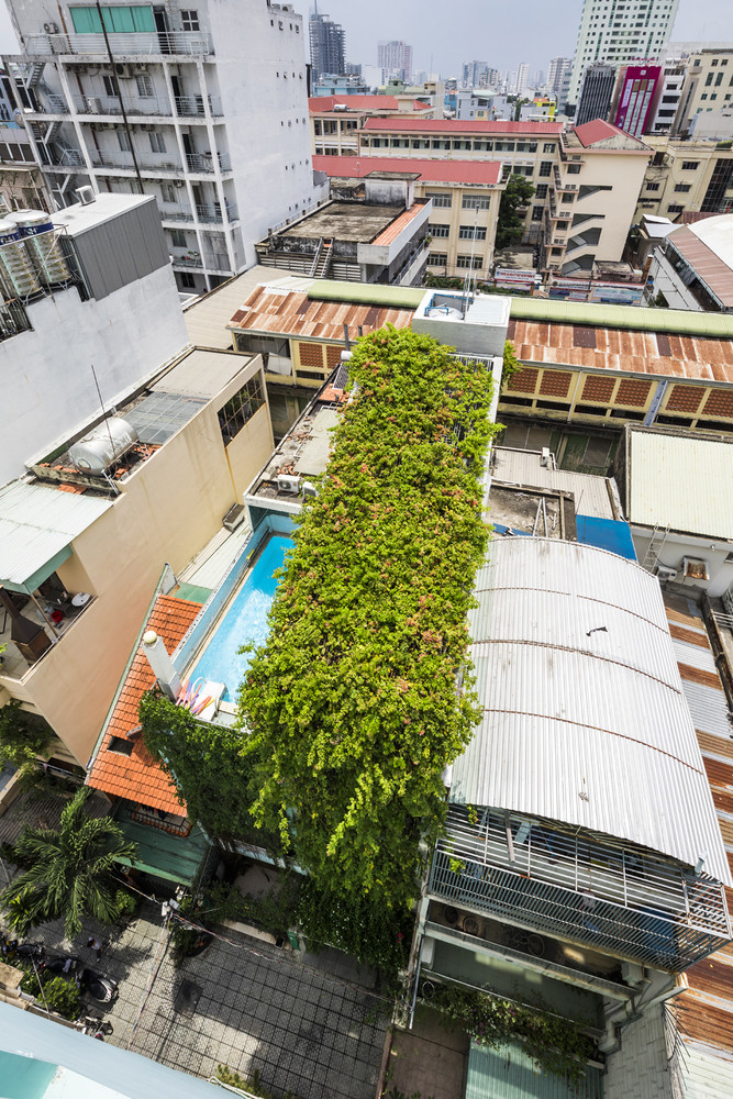 Ngôi nhà nhìn từ trên cao ở khu vực đông dân cư nằm ở trung tâm của TP HCM.