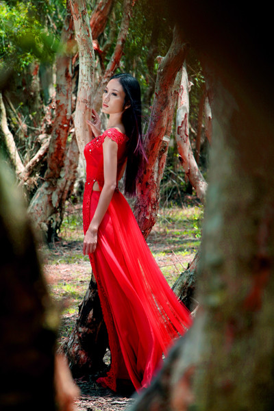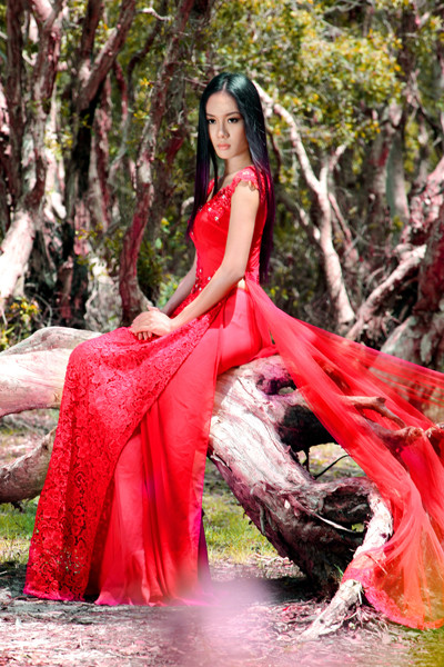 Mới đây, Nhã Trúc đã thực hiện bộ ảnh mới với sự hỗ trợ của chuyên gia trang điểm Hùng Việt, stylist Tài Phan và nhà thiết kế Ngô Nhật Huy. Bộ ảnh được thực hiện với concept trong một khu rừng yên tĩnh, trang phục áo dài bằng chất liệu reo và voan kết hợp với gam màu đỏ rực rỡ đã khiến Nhã Trúc đẹp lạnh lùng, bí ẩn như một bông hoa dại khoe sắc giữa rừng.