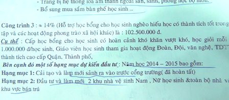 Việc nhà trường đưa ra được những hình ảnh, thông tin chứng minh sự thiếu thốn của trường là một việc hữu ích, để phụ huynh có cái nhìn khách quan hơn trong các khoản đóng góp. Có điều hình như các trường ít bàn đến các biện pháp làm sao để hoạt động dạy học tốt nhất trong điều kiện còn hạn chế đó, hay cách khắc phục cho phù hợp mà chỉ mới tập trung vào việc… đóng tiền để xây mới, thay đổi. Tinh thần "có thực mới vực được đạo" được nhiều trường tận dụng tối đa.