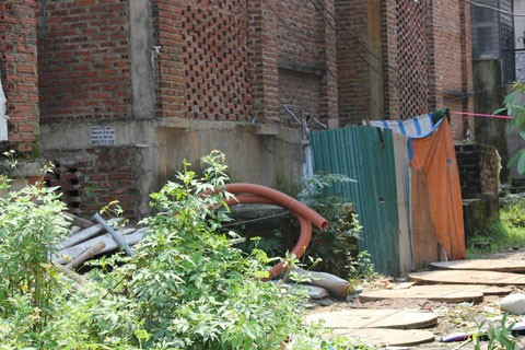 Ngổn ngang trong những căn biệt thự có giá cả chục tỷ đồng là cỏ dại mọc um tùm toát lên sự hoang lạnh. Một số căn được người lao động tự do tận dụng “nhảy dù” làm chỗ ở biến thành những căn lều tạm bợ, nhếch nhác..