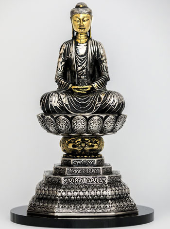 Món quà của Chủ tịch nước là tượng Adiđà bằng bạc, phiên bản Bảo vật quốc gia - tượng Adida tại chùa Phật Tích huyện Tiên Du, Bắc Ninh.