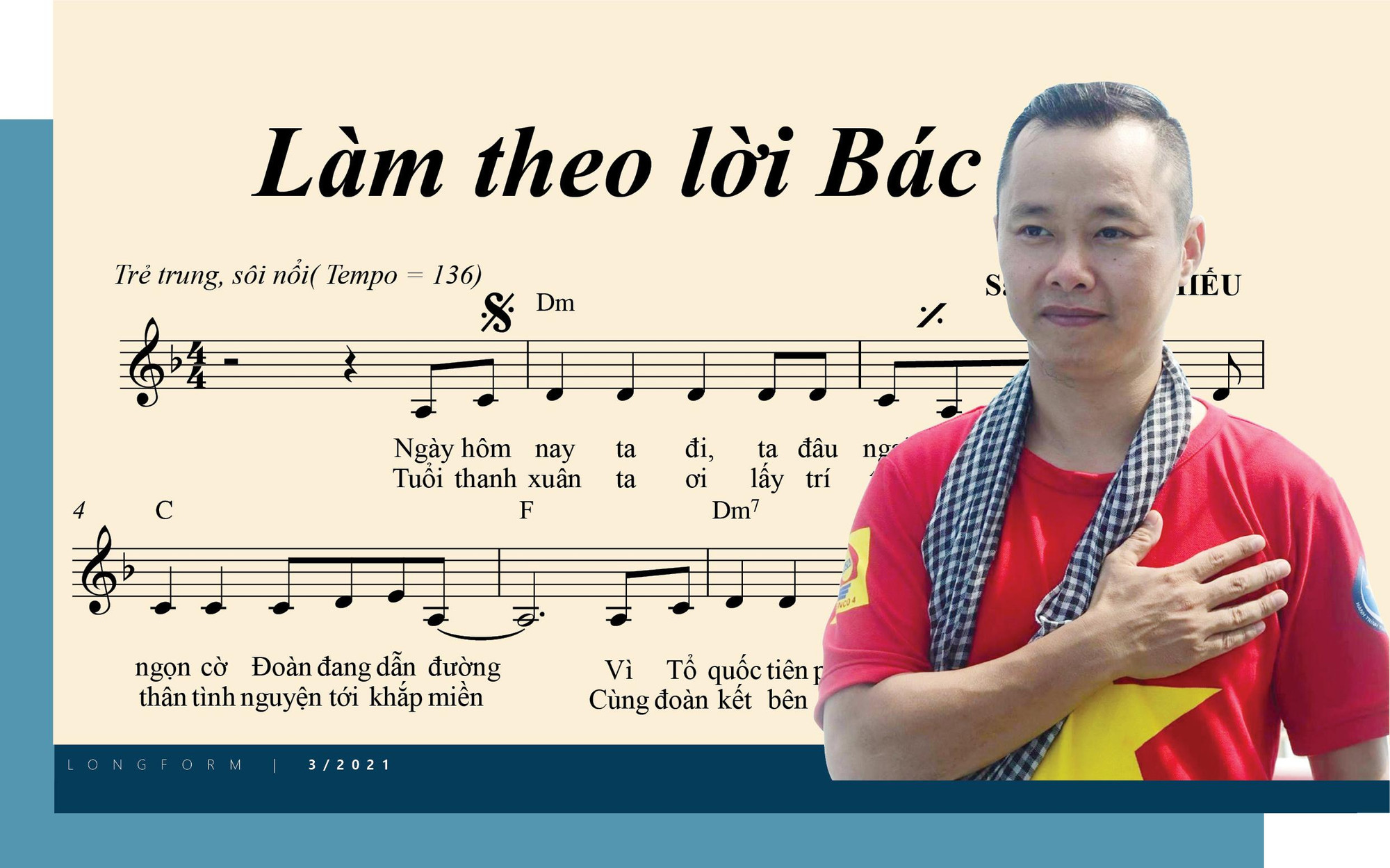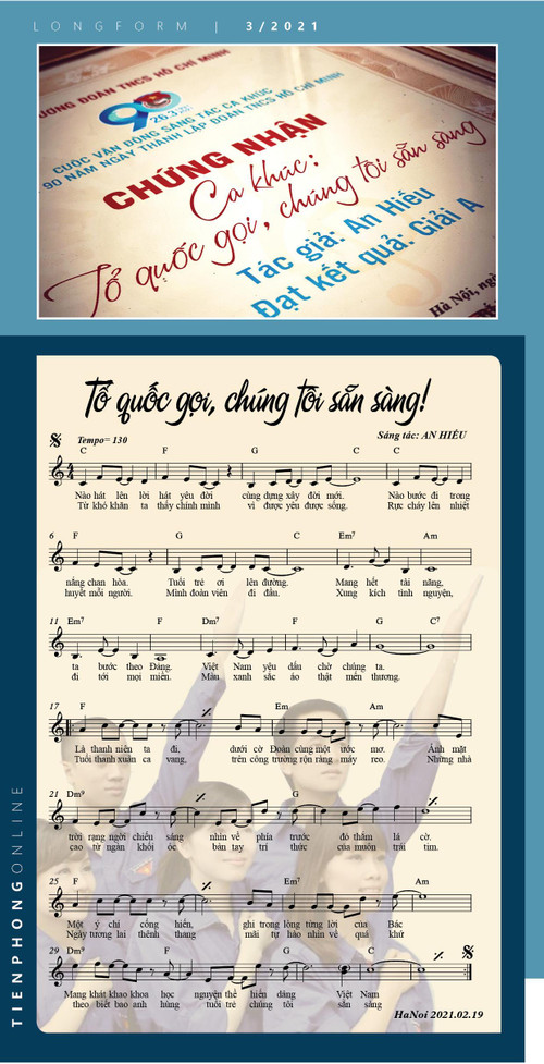 Đề tài viết về thanh niên thường có ý tưởng chung và rất kinh điển về tâm trong trí sáng, hoài bão ước mơ xây nghiệp lớn, làm theo lời Bác... Tại Đại hội thanh niên tiên tiến làm theo lời Bác lần thứ V, VI, mỗi đại hội tôi đều viết ca khúc chính thức và đều được đón nhận. Chủ đề của hai ca khúc ấy đều giống với chủ đề “Tổ quốc gọi, chúng tôi sẵn sàng”. Thế nhưng tới ca khúc mới này, tôi tìm ra cách nói khác đi.