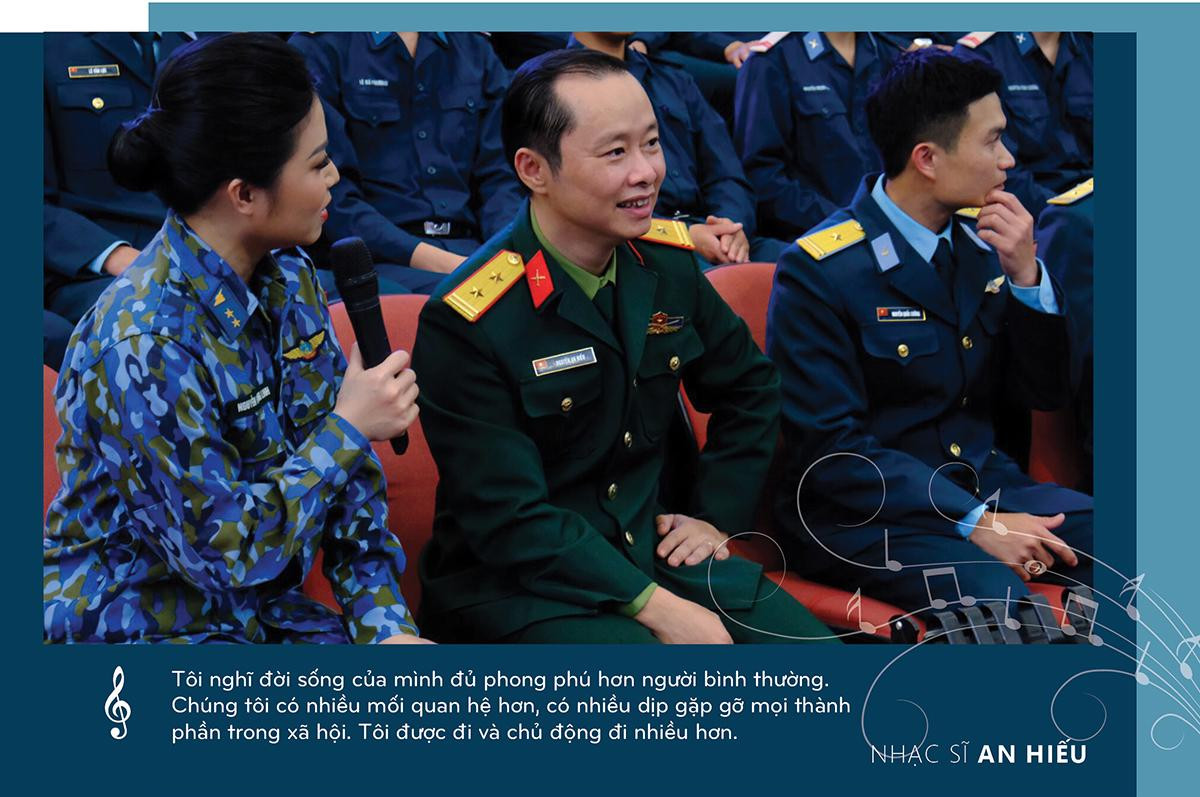 Tôi nghĩ đời sống của mình đủ phong phú hơn người bình thường. Chúng tôi có nhiều mối quan hệ hơn, có nhiều dịp gặp gỡ mọi thành phần trong xã hội. Tôi được đi và chủ động đi nhiều hơn. Tôi tự hào đi khắp dọc dài đất nước, hai lần đi Trường Sa, từng đặt chân tới các đồn biên phòng heo hút nhất, khổ ải nhất và gặp gỡ các chiến sĩ ở đó. Có những vùng miền thời này chưa có điện tôi cũng được tới đó. Đó là những trải nghiệm thú vị. Cuộc sống phong phú rất đáng yêu.