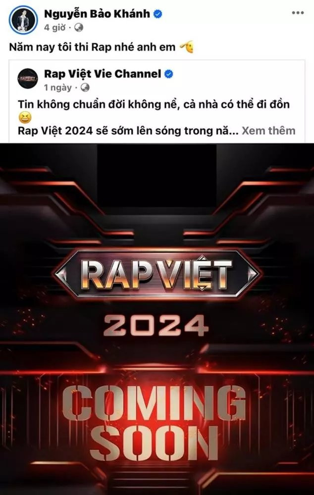Mới đây, K-ICM đã chia sẻ lại bài đăng của Rap Việt mùa 4. Đặc biệt, nam producer còn đính kèm dòng trạng thái "nửa đùa nửa thật": "Năm nay tôi thi Rap nhé anh em" khiến người hâm mộ tò mò. Đáng chú ý, anh chàng còn để lại bình luận: "Em có bán beat nhé!".