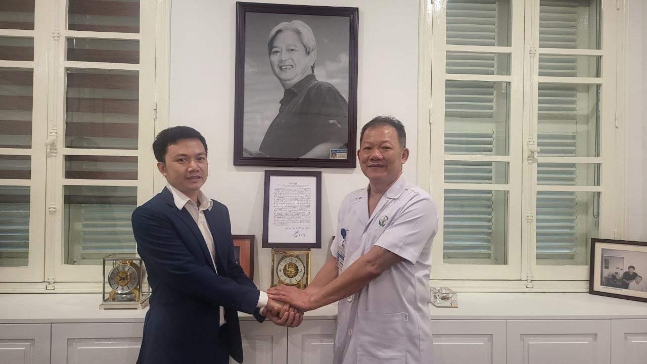 Tiến sĩ – Bác sĩ Dương Đức Hùng – Giám đốc bệnh viện Việt Đức đã rất xúc động và đặt bản nhạc ở vị trí trang trọng ngay dưới bức ảnh của cố PGS. BS Tôn Thất Bách.