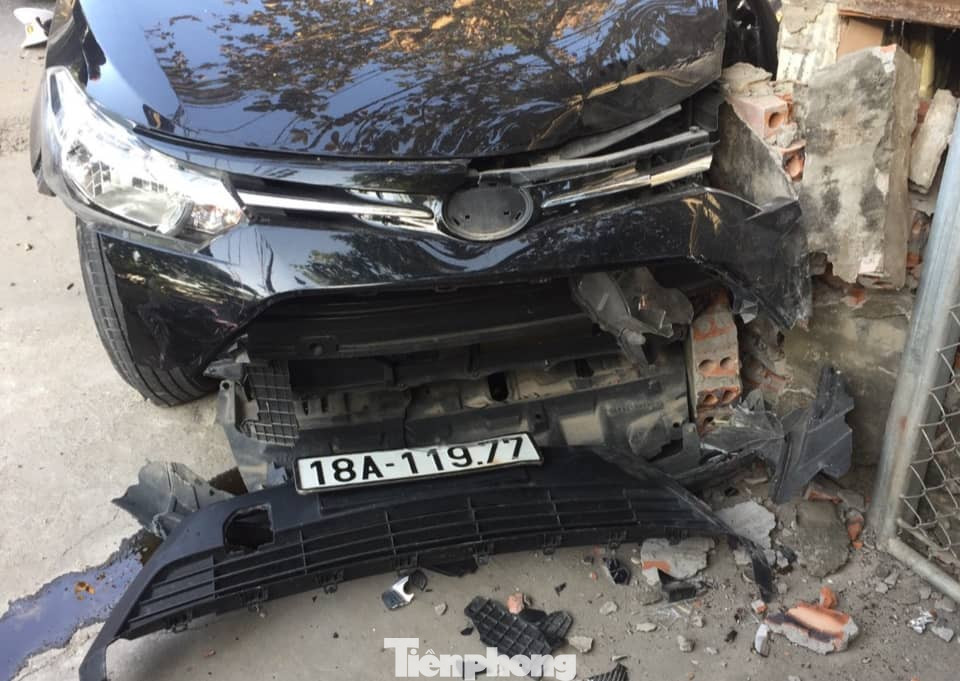 Chưa dừng lại, xe ô tô 4 chỗ tiếp tục va chạm với 2 xe máy nữa là xe có BKS 17B2 - 452.90 và xe có BKS 17B2 - 423.57 chạy ngược chiều. Sau đó xe ô tô tông vào cột bê tông, húc đổ một đoạn tường rào rồi lao vào đến cửa sắt nhà ông Lê Thanh Tâm (61 tuổi) nằm ở vên đường rồi mới chịu dừng lại.