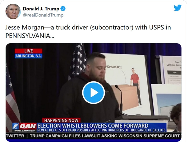 Người này tên là Jesse Morgan, nhận rằng mình làm cho một nhà thầu của Bưu điện, nói đã nhìn thấy hàng ngàn lá phiếu “khả nghi” đó.