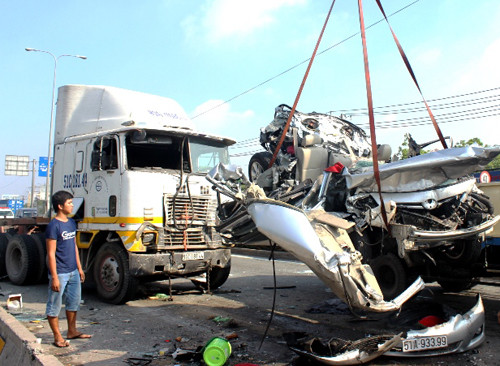 Khoảng 3h40, ông Lã Bình Sơn (52 tuổi) bị đánh thức bởi tiếng va chạm của kim loại rất mạnh, tiếp đó là tiếng còi xe inh ỏi. Từ căn nhà sát quốc lộ 1, đối diện cổng Khu chế xuất Linh Trung (quận Thủ Đức, TP HCM), ông chạy ra xem thì đã thấy rất đông người.