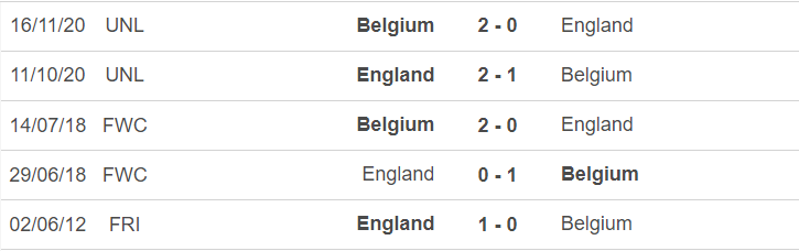Theo thống kê, thành tích đối đầu giữa Anh và Bỉ khá ngang ngửa. Cả hai đội từng thi đấu 10 trận và mỗi đội đều giành được 4 chiến thắng. Tuy vậy, những lần gặp gỡ lần đây, Bỉ mới là đội tuyển có lợi thế trước đối thủ. Lần gần nhất hai đội gặp nhau là tại đấu trường Nation League. Trong trận đấu đó, Bỉ giành chiến thắng 2-0 trước đối thủ. Dẫu sao thì lực lượng của cả hai đội hiện tại đã có nhiều sự thay đổi nên khó có thể nói trước được lợi thế sẽ nghiêng về ai trong trận đấu này.